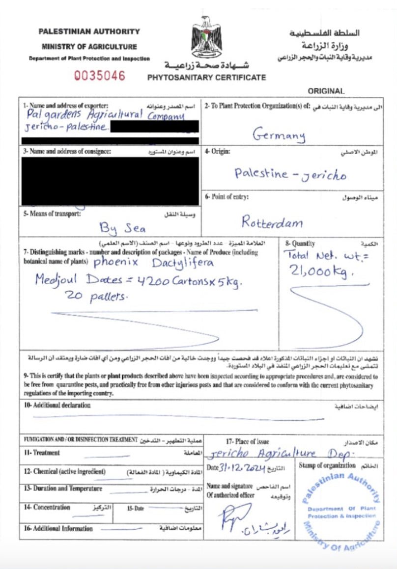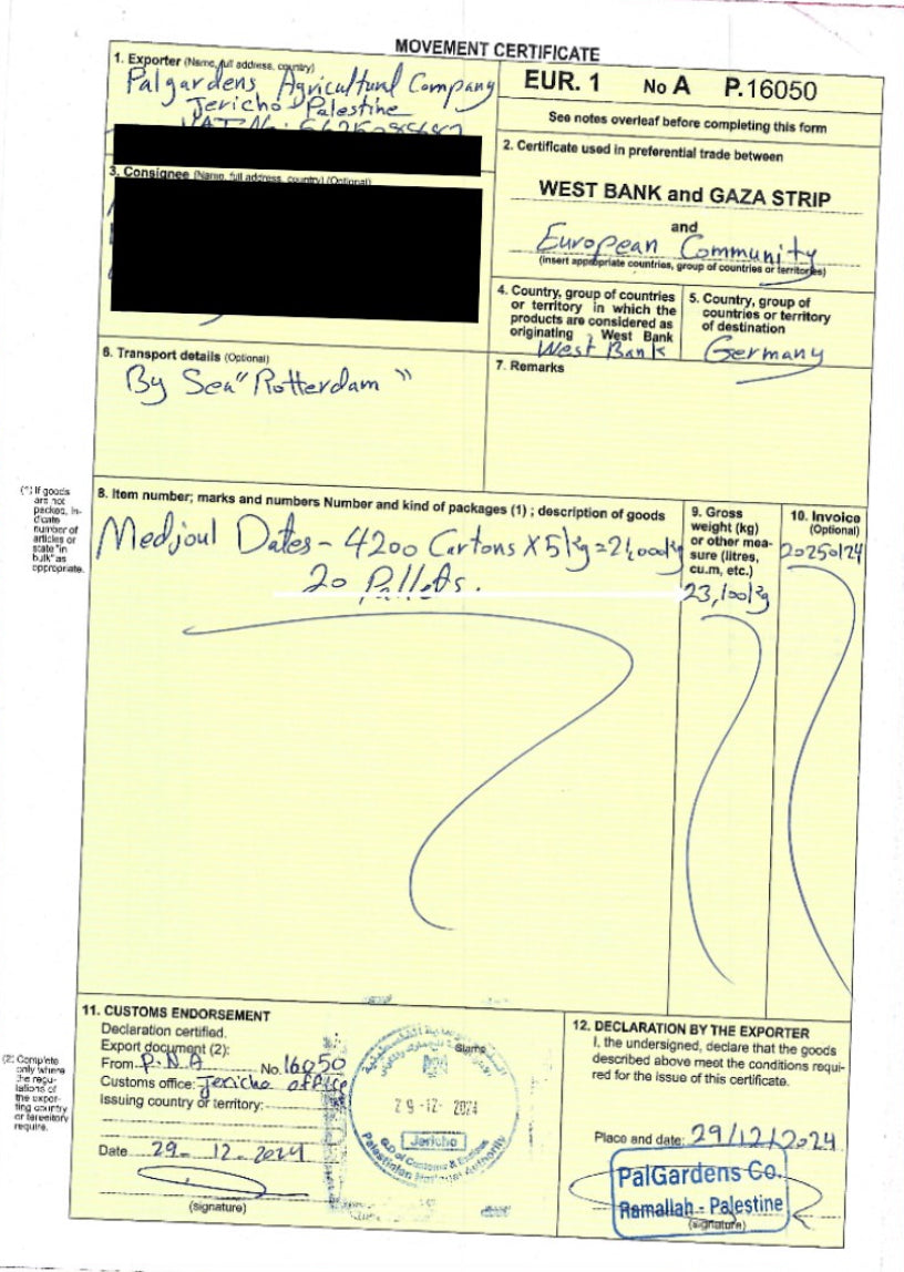 Phytosanitary certification + EUR1